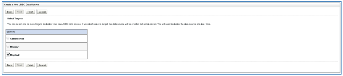 Select the target server on which the deployed EAR file is to be run and click Next. In this example, the server is MngSrv2.