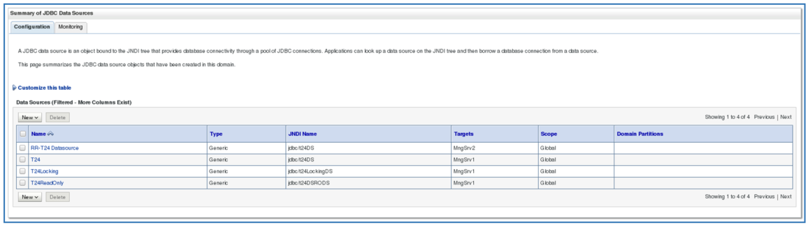 Click the Configuration tab and click Summary of JDBC DataSources. You can now see the newly configured datasource displayed in the list.