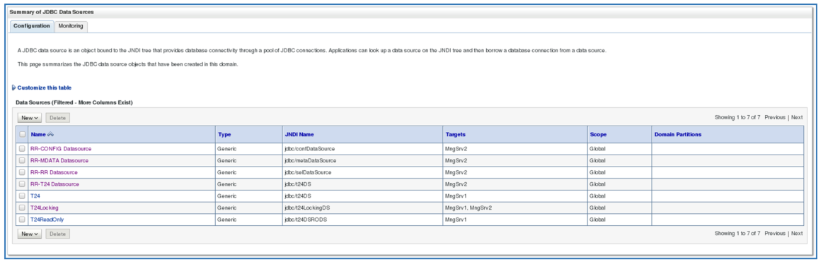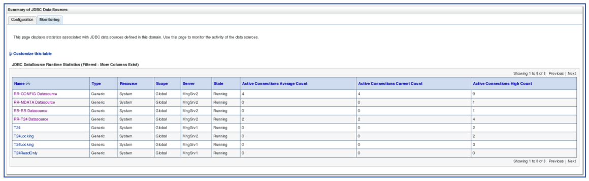Datasource Maximum Capacity value jdbc/confDataSource 120 jdbc/metaDataSource 20 jdbc/selDataSource 120 jdbc/t24DS 120 -