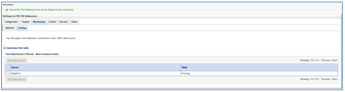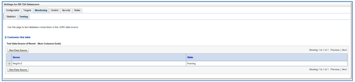 After configuring all the datasources, you must test the connection. Select Domain Structure > Services > Data Sources.