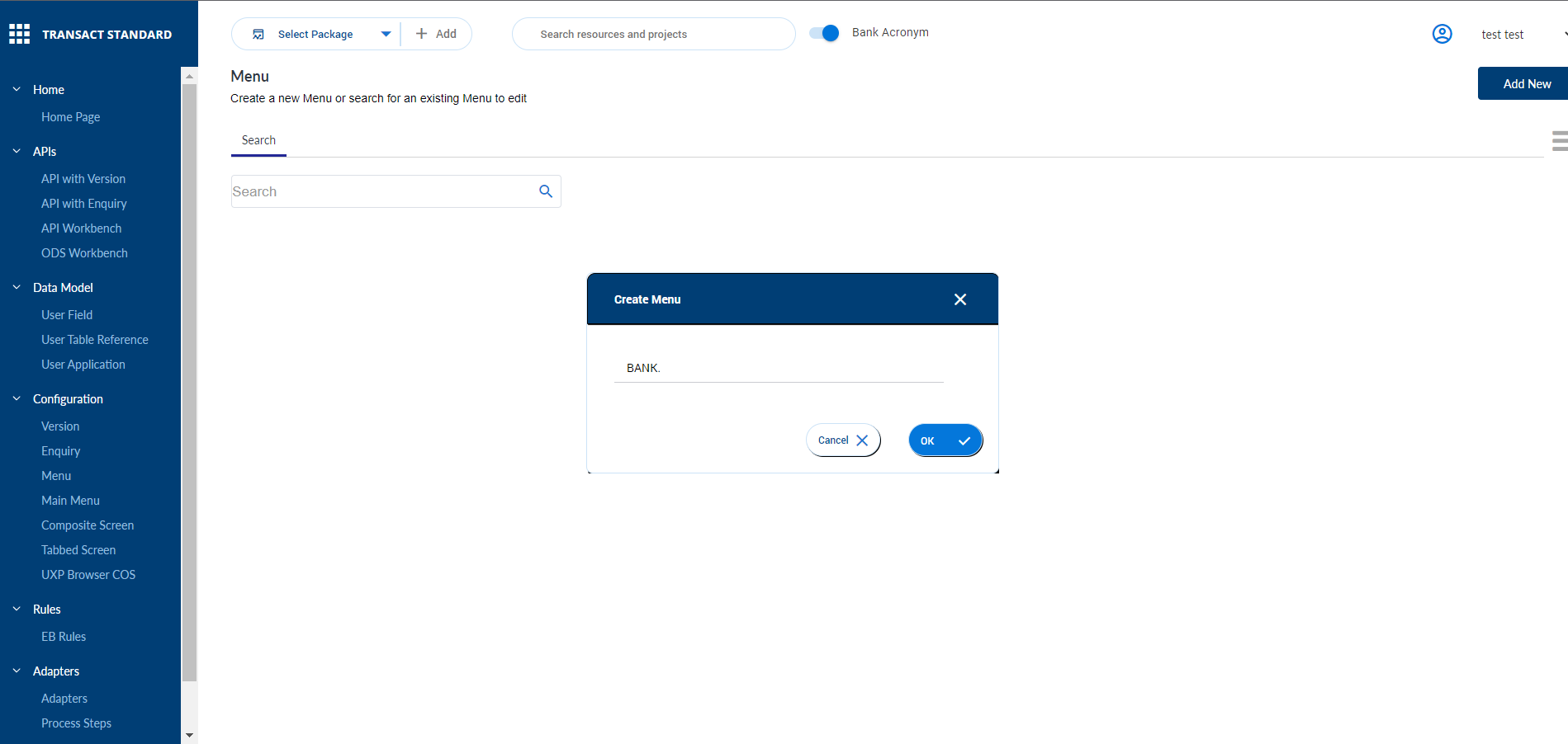 - Enter the name of the menu in the Create Menu dialog box and click OK. A menu is created successfully.