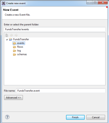 1. In your Event Designer project, right-click the events folder and specify the name of the event. Ensure that the event name has the .event extension.