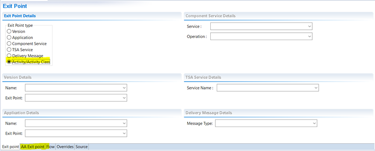 Activity or Activity Class exit point type allows you to define an exit point for AA Activity or Activity Class.