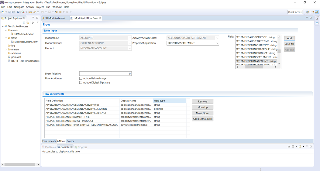 Using the AA.CLASS.APPL.CONDITION application, Transact provides an option to add fields from related or non-related application or local customized applications as flow enrichments.