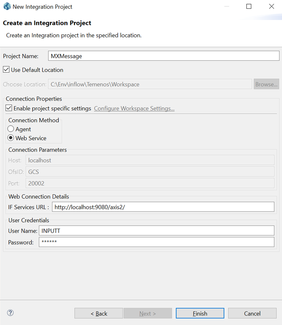 - Specify the project name, connection properties, and choose a location to save the project. You can accept the default location.NOTE: