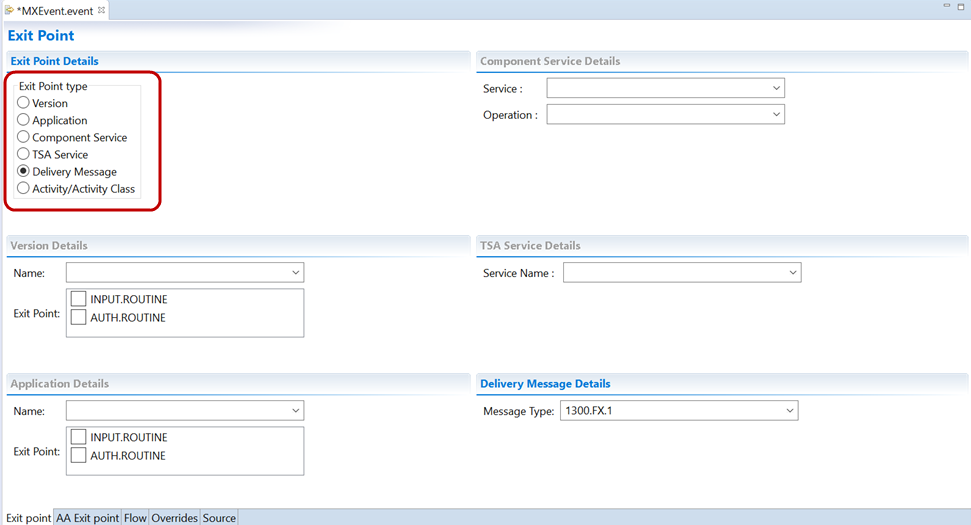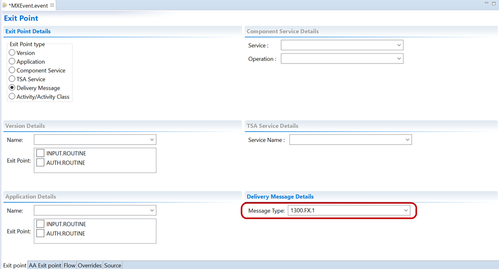 - In the Exit Point Details section, select Delivery Message. The Delivery Message Details get enabled.