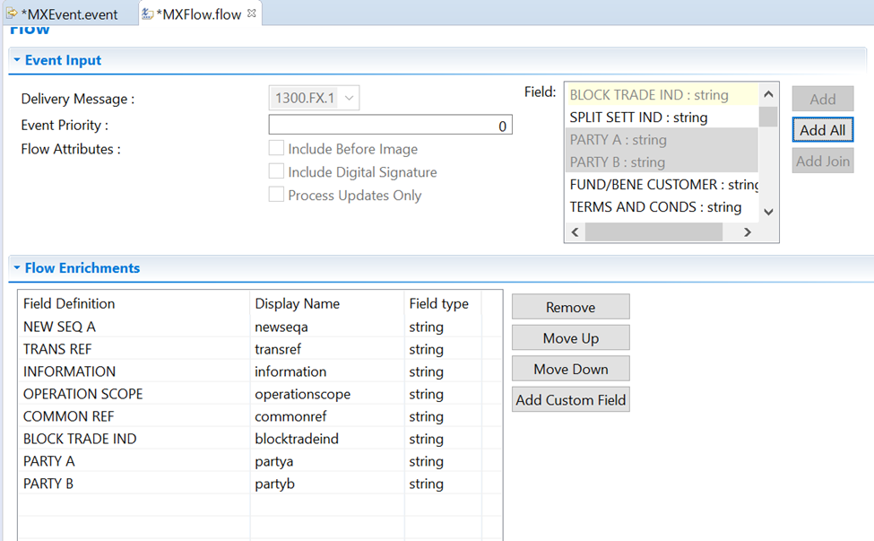 - The option Add all adds all the fields to the flow.