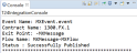 The published status of the event is displayed in the event console.