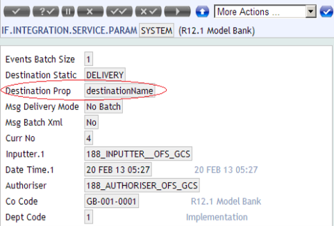 • Deliver each event as a JMS message within a transaction through the DeliveryMDB. The DeliveryMDB is configured to handle messages for an activation string which is equivalent to that of the value in the event XML for the property destinationName which is given in the field Destination Prop.