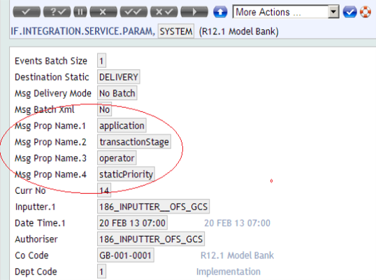 • Deliver each event as one JMS message within a transaction through the DeliveryMDB, which is configured to handle messages for the activation string 'DELIVERY'. Each JMS message is expected to have four header properties, such as application, transactionStage, operator, and staticPriority for which the values are identified from the fields of same name in the event XML.