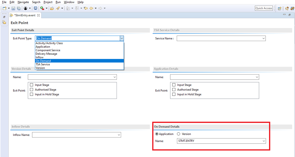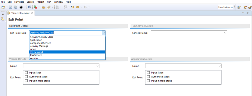 Integration Framework provides various exit points to capture business events and also data events. All these ext_creting-on-demand-eventsit points can capture events that occur during a business transaction. In Transact, there are applications that can get the data written directly. Events for these applications cannot be captured by Integration Framework. This exit point type covers this gap in Integration Framework.