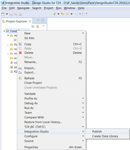 In the new context menu, click Integration Studio > Publish to publish the selected events.