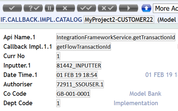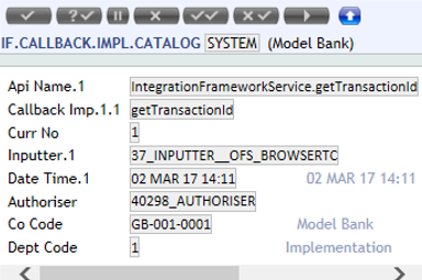 - Create a record in IF.CALLBACK.IMPL.CATALOG as specified below:
