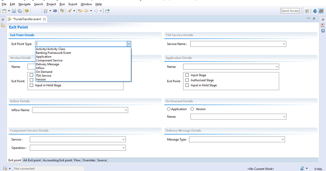 - Select the exit point type. The respective section is enabled and you can now specify the exit point and the application or version name.