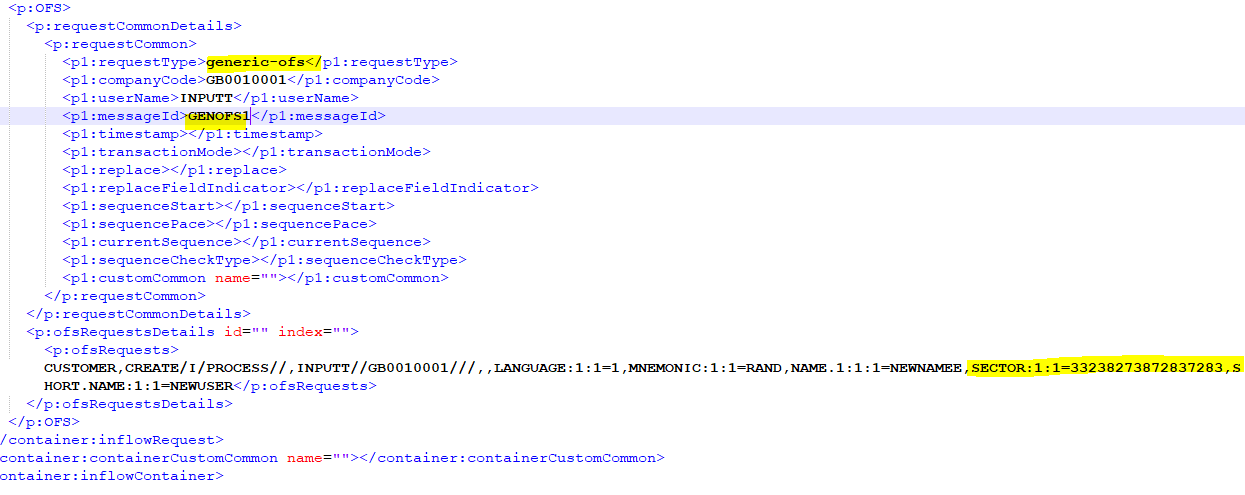 This section explains a failure scenario for GENERIC-OFS request. The below request does not have any valid sector.