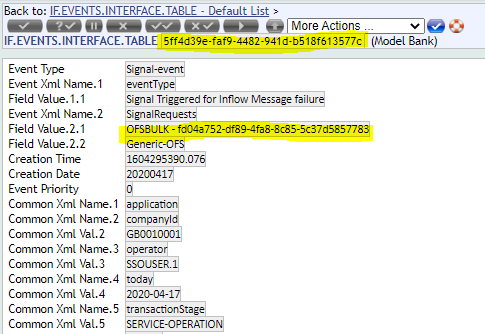 Similarly, for all the failures in Bulk OFS requests, a signal event triggers for each failed request and displays the details in IF.EVENTS.INTERFACE.TABLE.