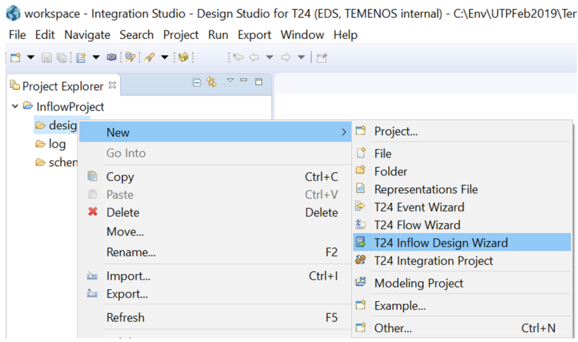 - Right-click the Designs folder and select T24 Inflow Design Wizard.