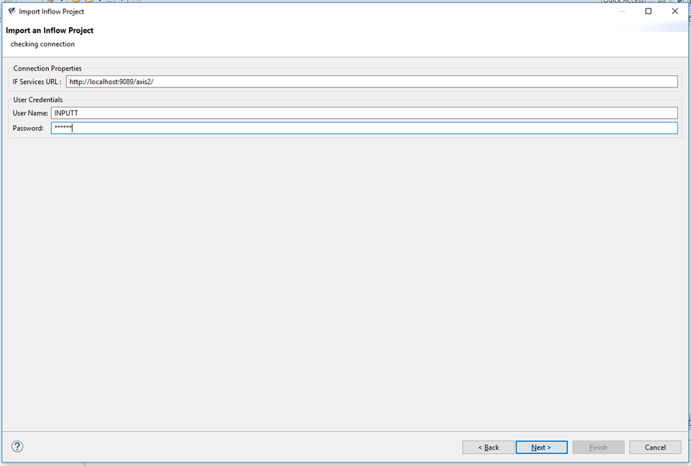 - Provide the connection URL of the environment from which you need to import the designs, the user credentials for accessing that particular environment and click Next.