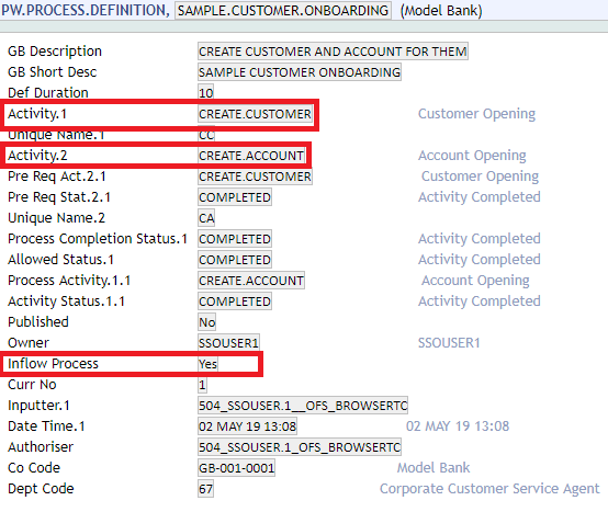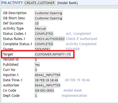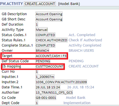 The number of PW.ACTIVITY records you create varies according to the scenario. In our example, we need to create two activities - one to create a new customer and another to create an account for that customer.