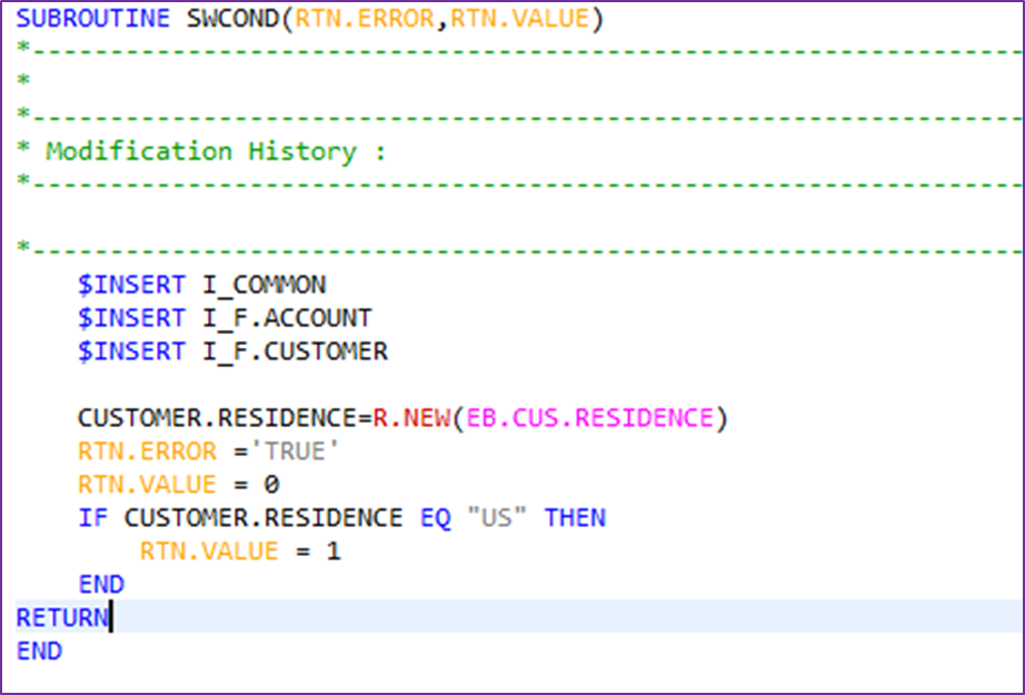 For the above PWD, a subroutine is written and attached to the application EB.API.