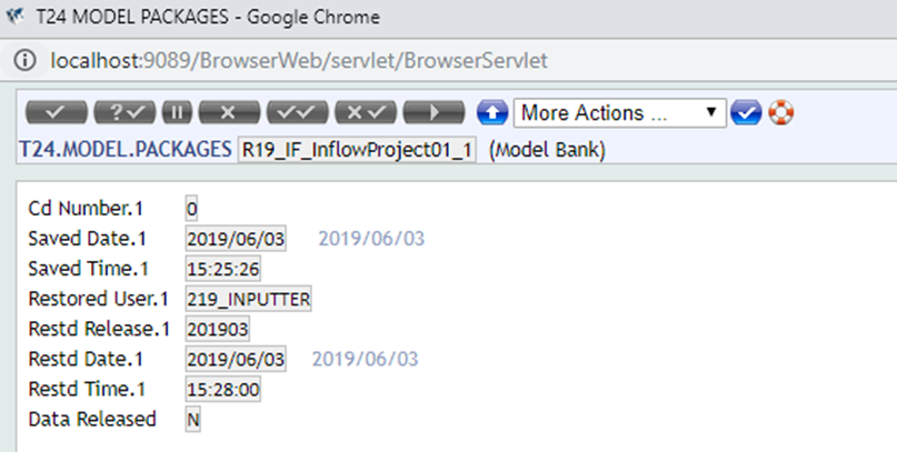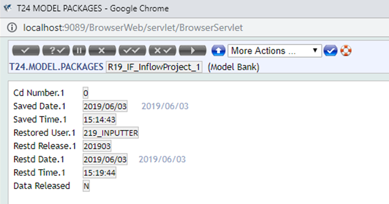 A record has been created in T24.MODEL.PACKAGES with Data Released field set to N.