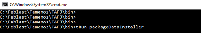- Run the Transact package installer command in the tafj/bin directory. The following message is displayed.