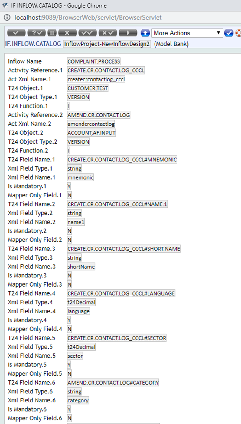 Inflow records have been created in the IF.INFLOW.CATALOG table.