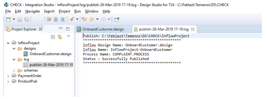 Inflow is published to Transact and the log is written to the inflow folder.