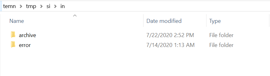 The processed messages from input directory are deleted once consumed. In case of successful processing, the message is moved to the archive folder and in case of failure, the message is moved to the error folder.
