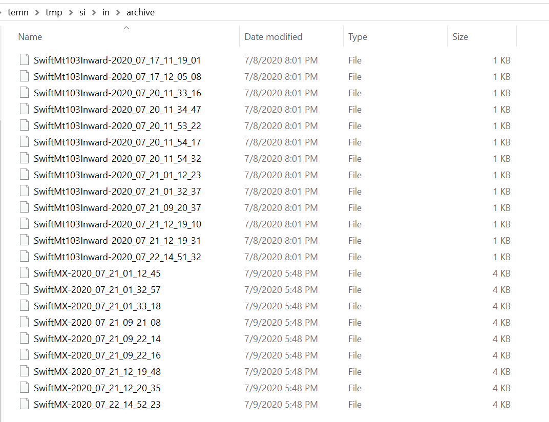 Messages are archived in the archive folder as <sourcefilename>-<Timestamp>.