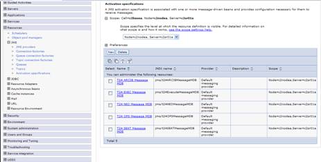 - Click Resources > JMS > Activation Specification > Scope > Server > New.