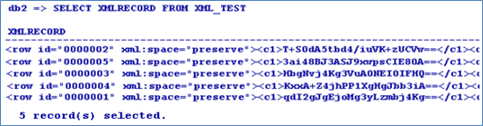 On retrieval of data, the row information from the XMLRECORD column is converted back from an XML sequence into the internal dynamic array format for use by the application.