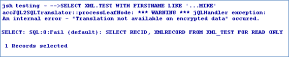 However, when the data is queried using a criteria, this functionality is suppressed because of the encryption. The stored data is encrypted and hence cannot be compared with the user-supplied data. Therefore, a default translation occurs bringing up all the data from the database and then filtering it in jBASE.