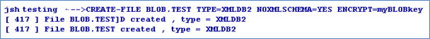 CREATE-FILE DATA TSTBLOB TYPE=XMLDB2 NOXMLSCHEMA=YES COMPRESSION=YES