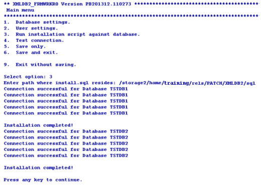 The install.sql script is available at %DRIVER_HOME%\sql. When the path is given, config-XMLDB2 loads the scripts, invokes sqlcmd at the command prompt and executes the script.