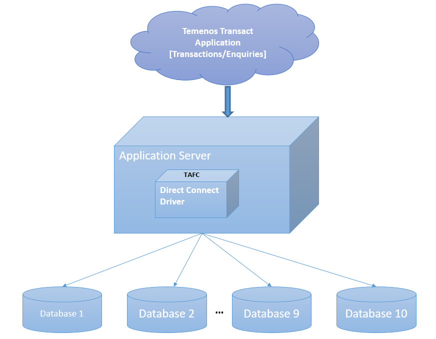 The Temenos Transact DB2 Direct Connect driver is a middleware component between Temenos Transact and DB2 database. It enables Temenos Transact to send to and retrieve data from DB2 database storage. The data is stored in DB2 server as either XML columns or BLOBs (Binary Large Objects) for internal or work files. This section provides details about the database configuration, commands, transactions and driver environment variables involved in multiple database access and table details.