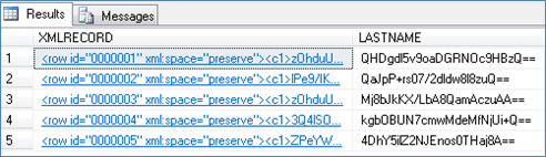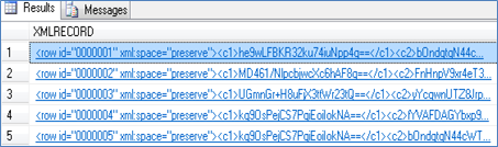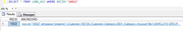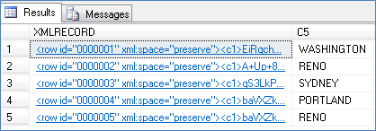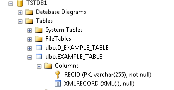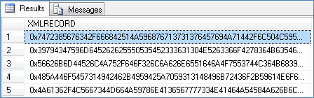 If the XMLRECORD is of XML type, the data will be converted from the internal dynamic array format into an XML sequence for insertion into the MSSQL server database. If the record is of BLOB type, the data will be stored directly in the XMLRECORD column in binary format.