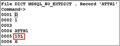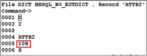 The following example shows promoting the local reference field Inp Rtn Fld in ACCOUNT. This dictionary entry is of I type on attribute c20.