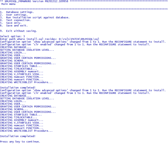 The install.sql script is available at %DRIVER_HOME%\sql. When the path is given, config-XMLMSSQL loads the scripts, invokes sqlcmd at the command prompt and executes the script.