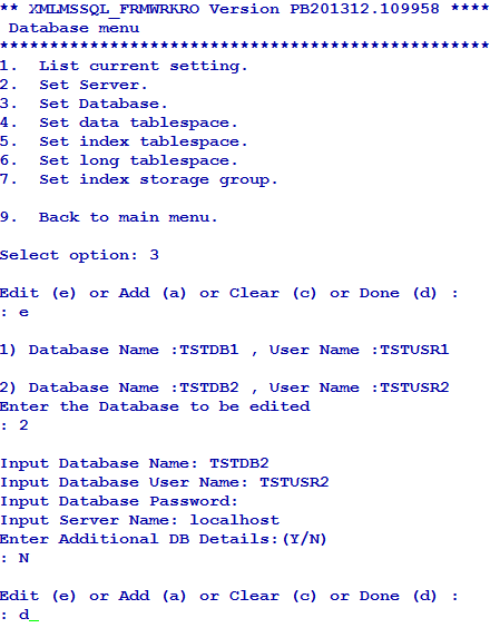 You can configure the user credentials of the first (default) database using the Set DB login user name and Set DB login password options in User menu. If you do not configure the user credentials for other databases, the user credentials of the first database is made available for all the databases.