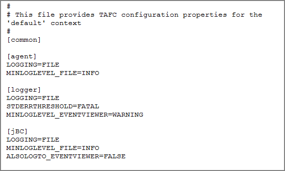 TAFC logger can use the same set of logger variables in tafc.ini. You can however configure the JBC logger variable using [jBC] section.