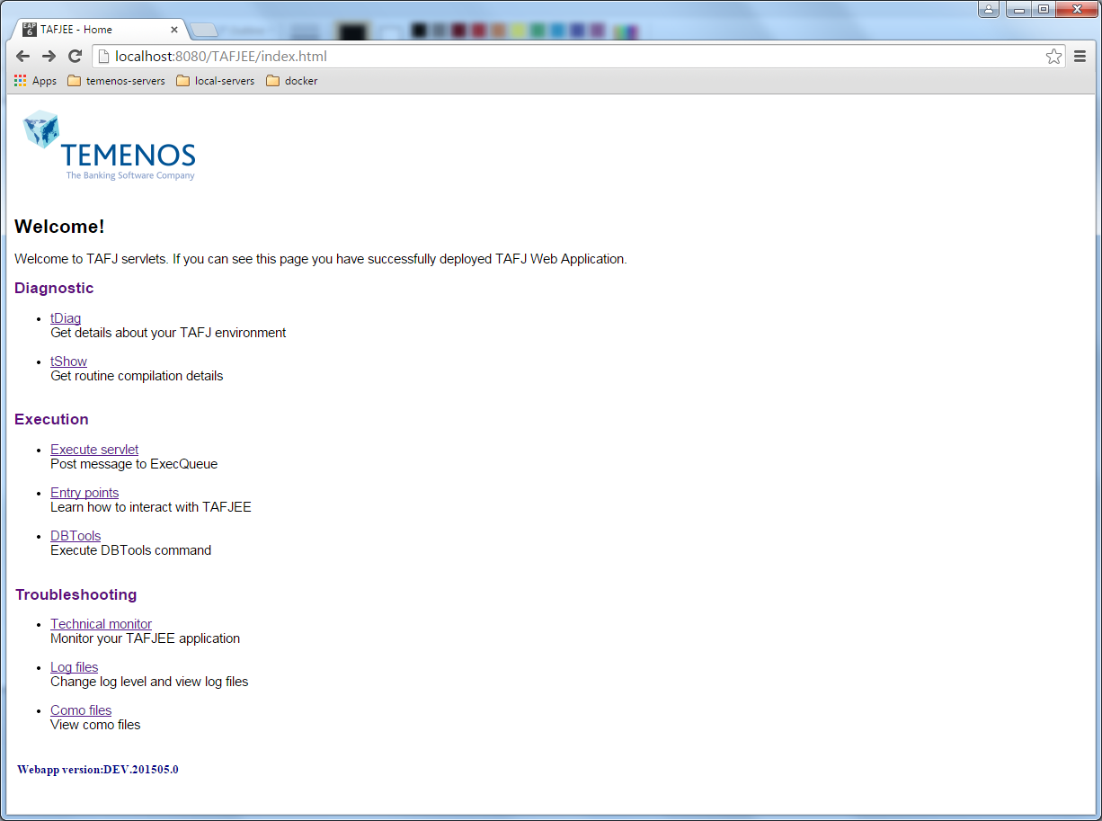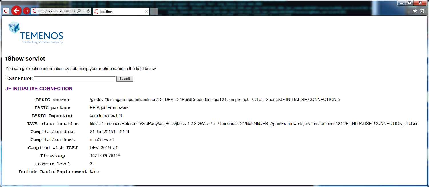TAFJJEE_WAR_TAFJ contains a servlet, which can be used to get details about TAFJ installation.
