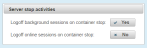 The default configuration logs off the batch session on container stop.The online session logoff is disabled. The goal is to trigger long running session termination, which prevents the container to stop until their completion and enables a short running sessions to complete.