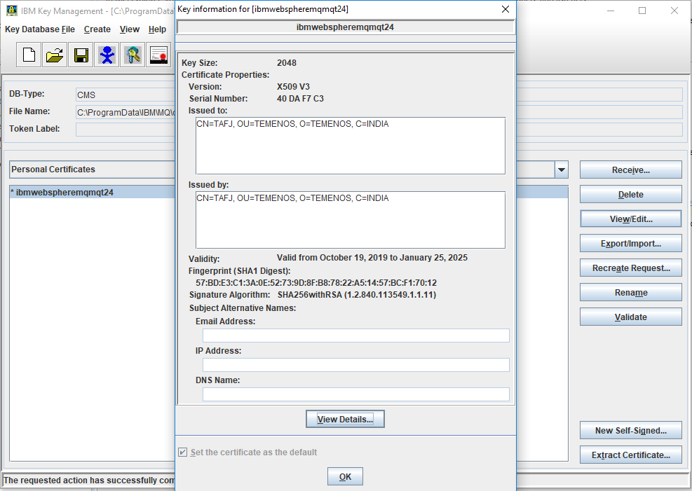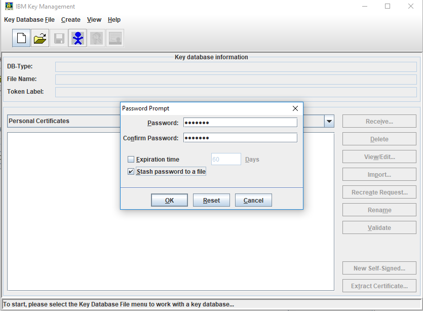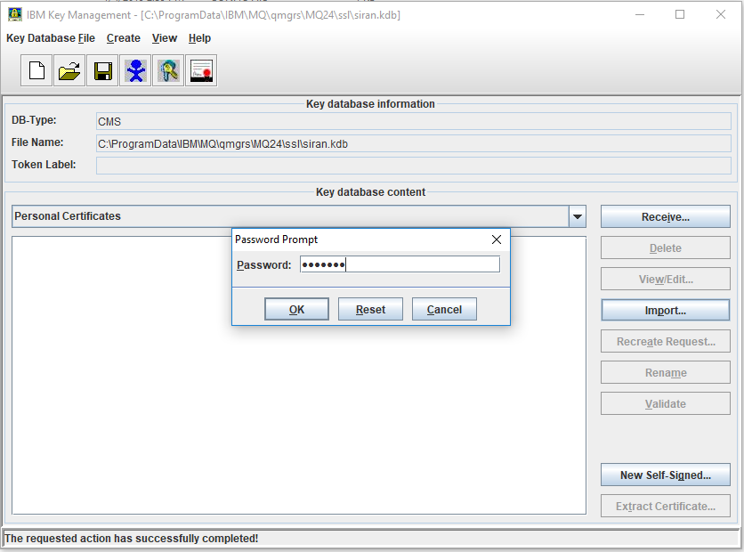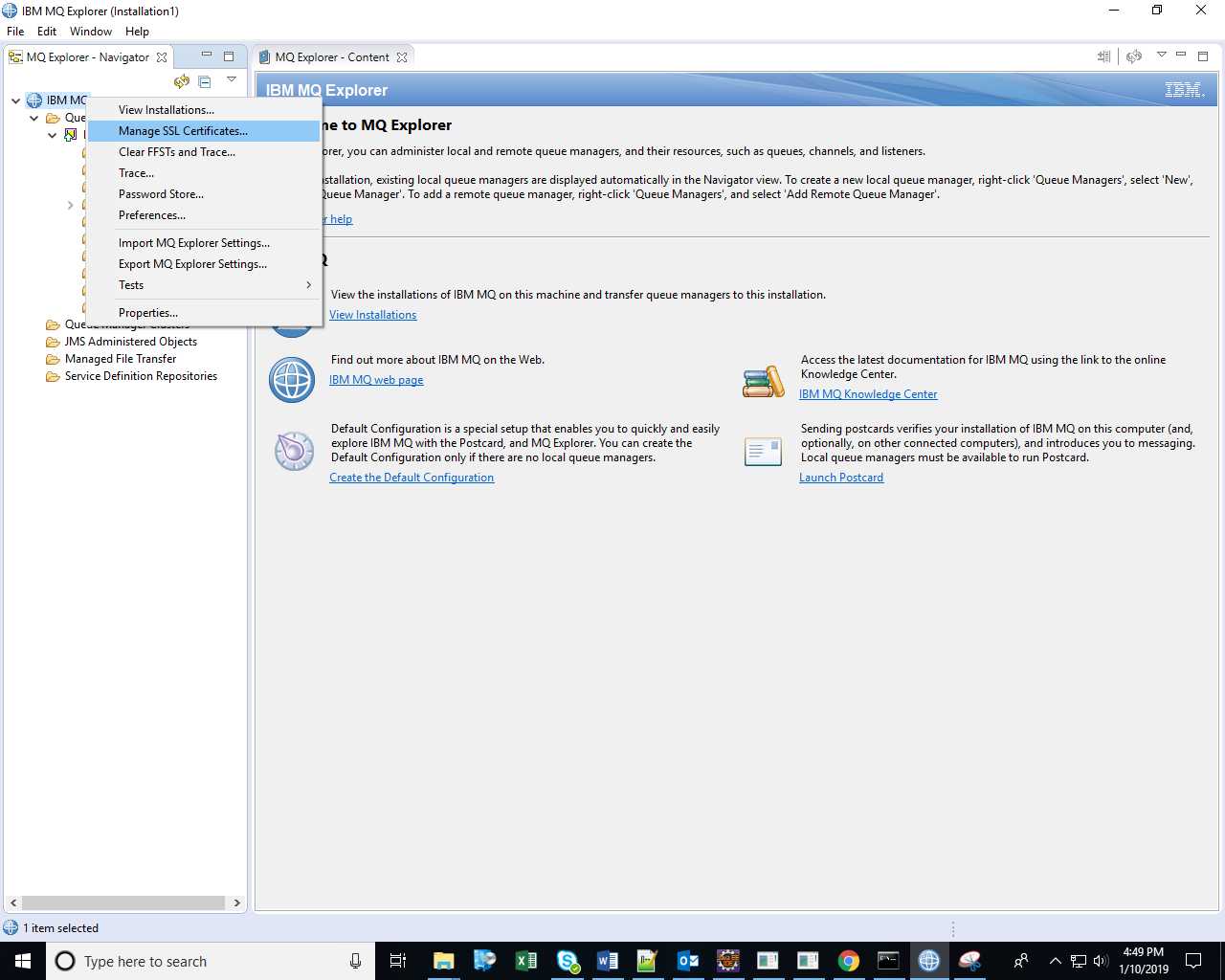 - Right click on IBM MQ and click Manage SSL certificates. The IBM Key Management dialog box appears.