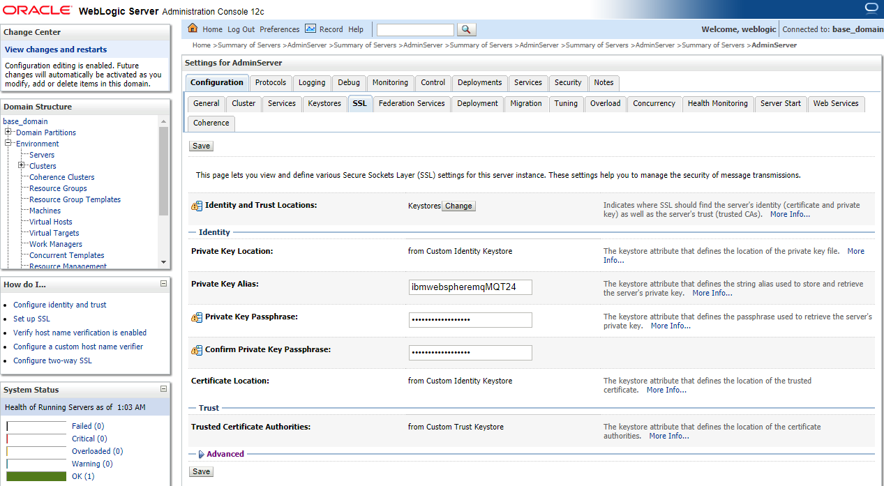 To manage SSL certificates at the Weblogic level, you need to do the following.