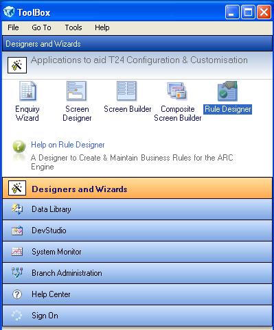 Rule Designer allows you to construct simple rules through an intuitive graphical interface and is available as part of Temenos Transact toolbox.