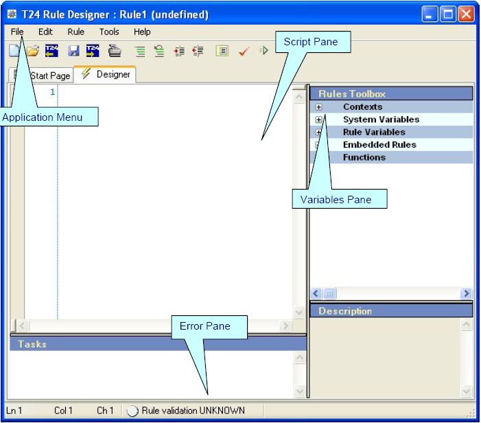 The Rule Designer GUI consists of the following main areas: