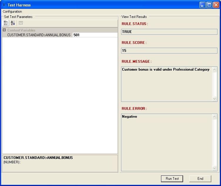 On clicking the Run Test button or pressing F5 from the keyboard, the results for the valid rule get displayed in the Test Harness.