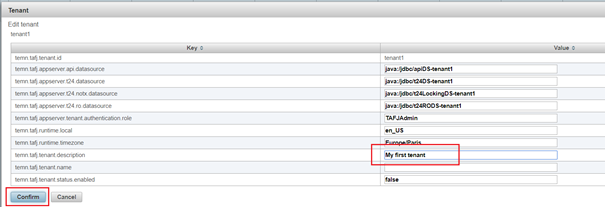 This section shows you how the tenant management servlet allows editing tenant definition property set.