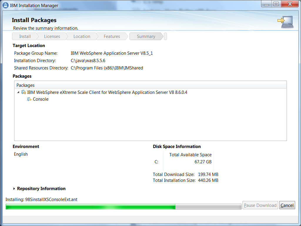 - Download and install the latest version of eXtreme Scale Client as shown below. For more information on how to install eXtreme Scale, see Installing and deploying WebSphere eXtreme Scale.